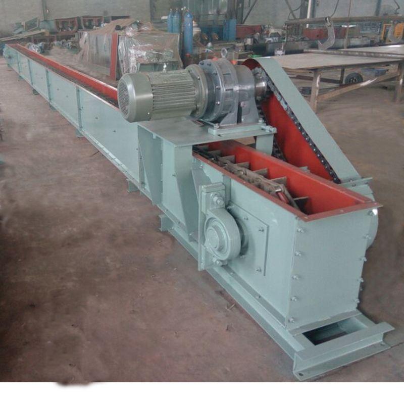 埋刮板輸送機是一種在封閉的矩形斷面的殼體內(nèi),借助于運動著的刮板鏈條連續(xù)輸送散狀物料的運輸設(shè)備。埋刮板輸送機結(jié)構(gòu)簡單,重量輕,體積小,密封性強,安裝維修方便。它不但可水平輸送,也可傾斜或垂直輸送sk多點加料,多點卸料,工藝布置靈活,全封閉輸送不污染環(huán)境。當(dāng)發(fā)生過載時,抗沖擊繼電器馬上切斷電源,保護(hù)整機完好。我公司研制的新型埋刮板輸送機采用板式刮板、頭部卸料口加長、卸料拍打裝置、中間寬卸料口以及加大彎曲段圓弧半徑等措施,成功的解決了頭部積料和尾部積料,同時MC、MZ埋刮板輸送機彎曲段不易堵料, 大的提高了埋刮板輸送機的使用可靠性。技術(shù)性能優(yōu)于其它廠家生產(chǎn)的普通型埋刮板輸送機,外形尺寸與普通埋刮板輸送機基本相同。