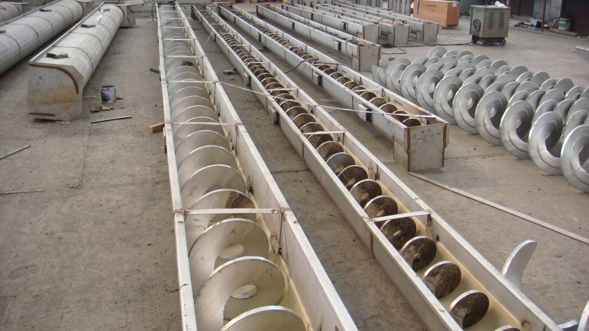 無軸螺旋輸送機代替了傳統(tǒng)的膠帶式輸送機,它具備了:維修簡單、污染少、噪音小、工作效率高等優(yōu)點。迅速被人們重視。不但能運送老式設(shè)備無法運送的輕軟、細小、帶狀漂浮物質(zhì),而且還能將砂水分離,污物壓榨。外形美觀、結(jié)構(gòu)合理。但是,該設(shè)備的主軸是一根無軸的螺旋,制作難度較大,以前國內(nèi)一直依賴進口,河北品丞經(jīng)過多年的試驗,成功研制出我們自己的無軸螺旋,我廠生產(chǎn)的無軸螺旋輸送機輸送量大、耗能少、結(jié)構(gòu)簡單安裝維護方便。